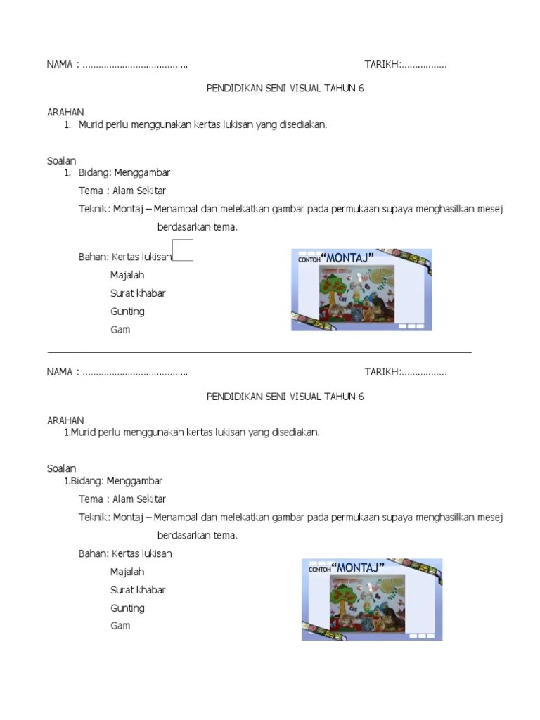 Pendidikan seni visual tahun 6 unit 3 : lukisan alam sekitar. Poster teknik lukisan kolaj dan montaj.